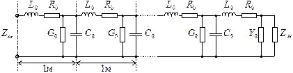 Во втором случае схемная модель отрезка длинной линии может быть представлена соединением звеньев с сосредоточенными компонентами (рис.1.2), описываемыми погонными параметрами, отнесенными к единице длины: индуктивностью