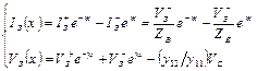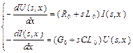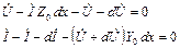 В режиме установившихся гармонических колебаний в линии комплексы тока и напряжения и их производные будут функциями только пространственной координаты (