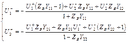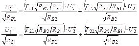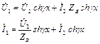 Два последних выражения представляют из себя уравнения четырехполюсника, в которых коэффициенты при