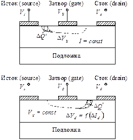 по тому же закону, по которому она изменяется в зависимости от постоянного напряжения на затворе