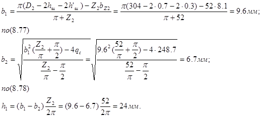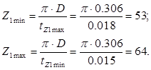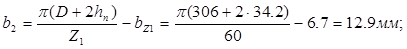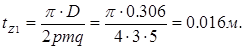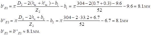 tZ2=πD2/Z2=π0.304/52=0.0184м=18,4мм.