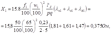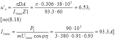 (для обмотки с q=5 по табл. 3.16 kоб1=kр1=0,957; для Dа=0,45 м по рис. 8.20 kЕ = 0,98);