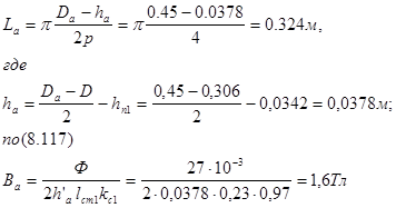 19. Принимаем предварительно по табл. 8.10 Bz1=1.9 Тл; Ва=1.6 Тл, тогда по (8.37)