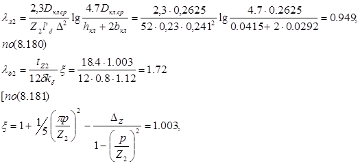 8. Отношение λ = lδ/τ = 0.23/0.24 = 0.96. Значение λ = 0,96 находится в допустимых пределах (см. рис. 8.25, а).