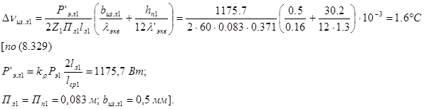 наружной поверхности лобовых частей над температурой воздуха внутри двигателя по (8.336)