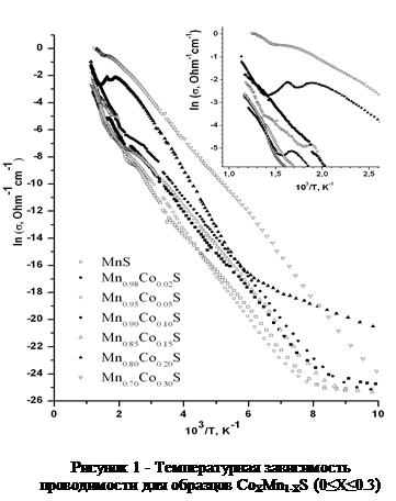 Реферат: Температурные зависимости удельного электосопротивления твердых растворов CoXMn1-XS