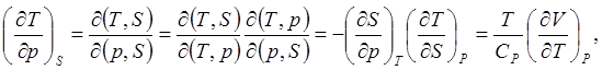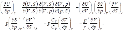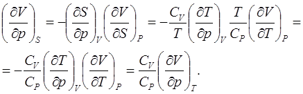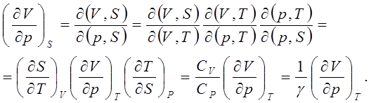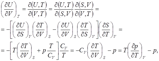 Для получения этого выражения было использовано известное в термодинамике соотношение, которое, также, легко получить с помощью якобианов