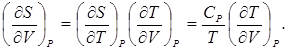 Из объединённого выражения обоих начал термодинамики следует, что если подвод теплоты к системе осуществляется при изобарическом процессе, то TdS=CP