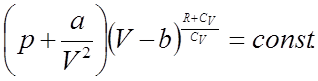 Уравнение адиабатического процесса для газа Ван-дер-Ваальса целесообразно найти из выражения