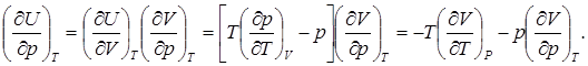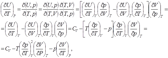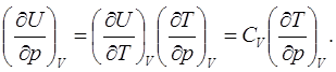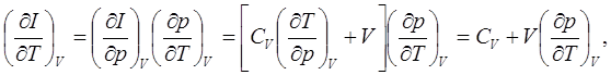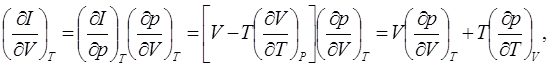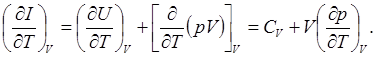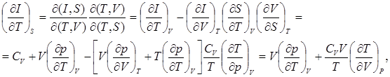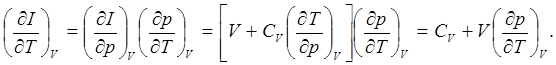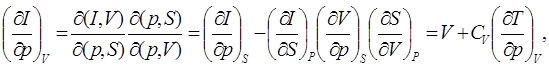 Однако это значение частной производной можно определить и более простым способом, если учесть, что I=U+pV и dI=dU+d(pV). Тогда