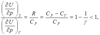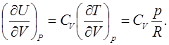 Этого и следовало ожидать, поскольку внутренняя энергия идеального газа зависит от температуры. Поэтому условию U=const соответствует T=const. Для реальных газов условие (7.4) не выполняется.