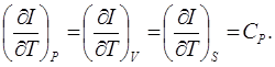 Однако, теплоемкость Cp для идеального газа можно определить как частную производную от тепловой функции по температуре. Действительно, при изобарическом процессе