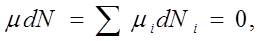 где dN – изменение числа молей вещества , а m – химический потенциал, имеющий размерность энергии в расчете на количество молей.