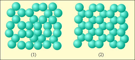 | Рисунок 1. Пример ближнего порядка молекул жидкости и дальнего порядка молекул кристаллического вещества: 1 – вода; 2 – лед. |