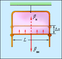 | Рисунок 3.5.3. Подвижная сторона проволочной рамки в равновесии под действием внешней силы |