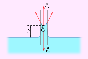 | Рисунок 6. Подъем смачивающей жидкости в капилляре. |