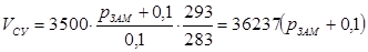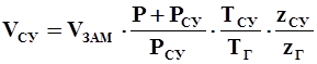 Для побудови графіків залежностей приведених до стандартних умов об'ємних витрат газу від tзам та рзам використаємо такі залежності: