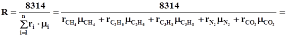 Визначити газову сталу для заданого складу газу і парціальний тиск кожного компонента газової суміші.