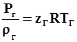 Для визначення густини реального газу запишемо рівняння стану для дійсних умов з урахуванням коефіцієнта стиснення z
