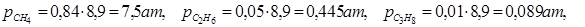 Склад газу: СН4 – 84 % об., С2 Н6 – 5% об., С3 Н8 – 1% об., N2 = 4% об., СО2 – 6% об.