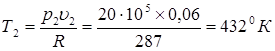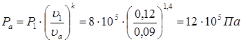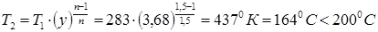 Температуру в кінці стискування визначаємо з рівняння політропного процесу