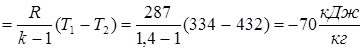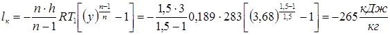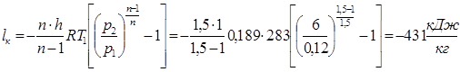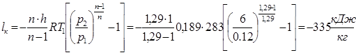 Теоретичні витрати роботи у компресорі обчислюються за залежністю