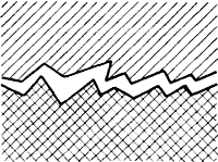 Рассмотрим более детально процесс возникновения сил трения скольжения и покоя на стыке двух соприкасающихся тел. Если посмотреть на поверхности тел под микроскопом, то будут видны микронеровности, которые мы изобразим в увеличенном виде (рис. 1, а).