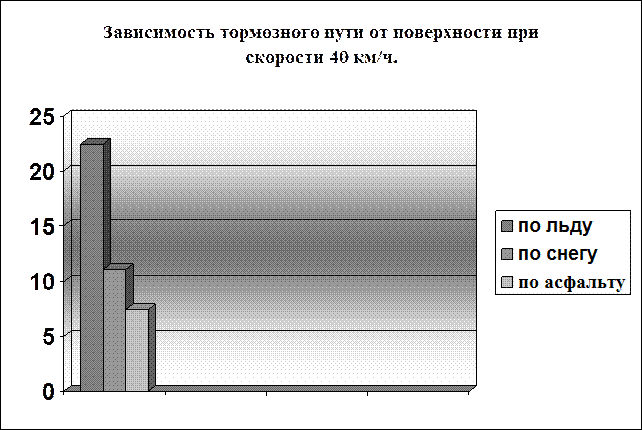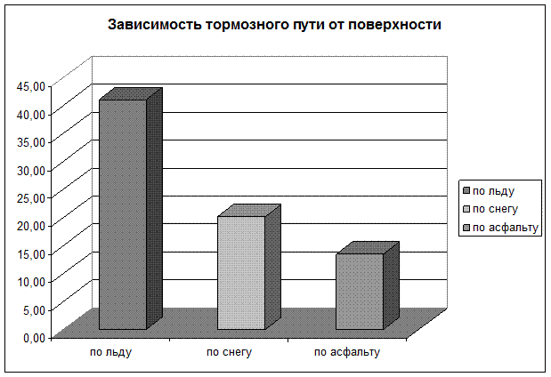 Измерив коэффициент трения, и рассчитав тормозной путь автомобиля при движении в разных дорожных условиях, можно увидеть, что наиболее опасной считается дорога, покрытая льдом, а затем дорога, покрытая снегом, потому что тормозной путь в этих случаях гораздо больше, чем по асфальту. И при аварийной ситуации автомобиль, движущийся с высокой скоростью, не сможет избежать дорожнотранспортного происшествия. Поэтому при неблагоприятных погодных условиях нужно двигаться намного медленнее, чем обычно. Ведь не зря гласит народная пословица: «Тише едешь – дальше будешь».