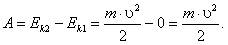 Если начальная скорость движения тела массой т равна нулю и тело увеличивает свою скорость до значения υ , то работа силы равна конечному значению кинетической энергии тела: