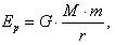 Потенциальная энергия гравитационного взаимодействия системы двух материальных точек с массами т и М, находящихся на расстоянии r одна от другой, равна