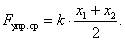 Сила упругости изменяется в процессе деформации пружины. Для нахождения работы силы упругости можно взять среднее значение модуля силы (т. к. сила упругости линейно зависит от x) и умножить на модуль перемещения: