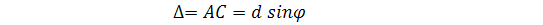 . За решеткой в результате дифракции лучи будут распространяться по разным направлениям. Так как щели находятся на одинаковых расстояниях друг от друга, то разности хода ∆ вторичных лучей, образующихся согласно принципу Гюйгенса – Френеля и идущих от соседних щелей в одном направлении