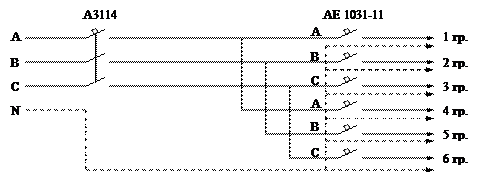 Рис. 3. Электрическая схема осветительного щита ЩО 31-21