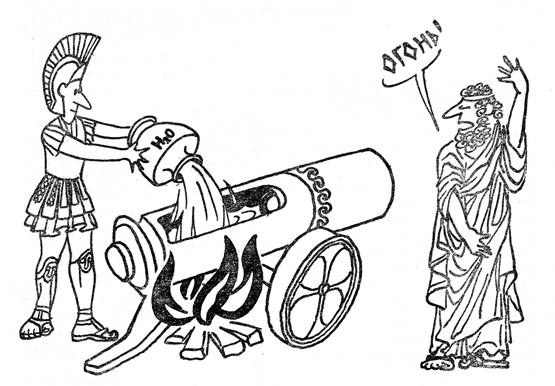 Как же стреляла эта пушка? Один конец ствола сильно нагревали на огне. Затем в нагретую часть ствола наливали воду. Вода мгновенно испарялась и превращалась в пар. Пар, расширяясь, с силой и грохотом выбрасывал ядро. Для нас интересно здесь то, что ствол пушки представлял собой цилиндр, по которому, как поршень, скользило ядро.