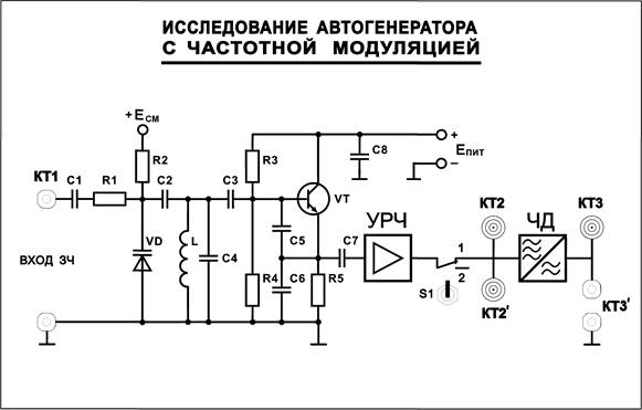 Цель работы: изучить параметры ЧМ сигналов, способы реализации частотной модуляции, принципы построения автогенераторов, управляемых по частоте; экспериментально исследовать автогенератор, в котором возможно осуществление частотной модуляции.