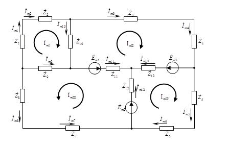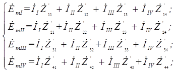 д) составляем систему уравнений цепи относительно комплексных амплитуд контурных токов;