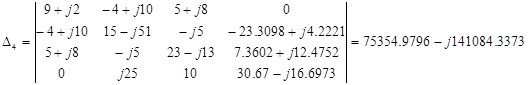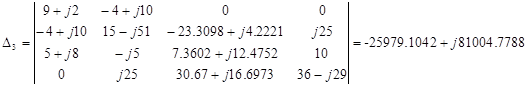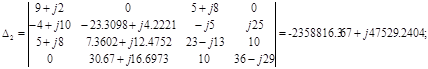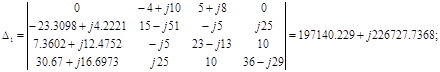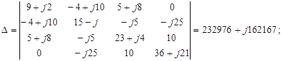 Для расчета комплексных амплитуд контурных токов находим определители матриц и вычисляем искомые токи по методу Крамера: