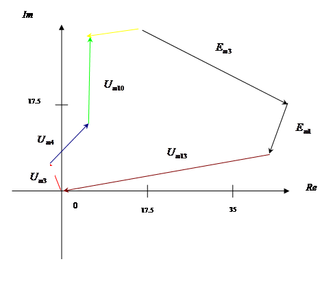 Рассчитаем комплексные амплитуды напряжений на всех элементах контура: