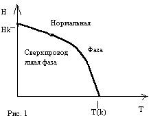 То при критическом его значении сверхпроводимость разрушится. Чем ближе мы подходим к точке критической температуры, тем меньше должна быть напряженность внешнего магнитного поля для разрушения эффекта сверхпроводимости, и наоборот, при температуре, равной температуре абсолютного нуля напряженность должна быть максимальной по отношению к другим случаям для достижения такого же эффекта. Данная взаимосвязь иллюстрируется следующим графиком (рис. 1).