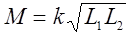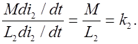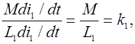 Предположим, что в первом контуре на рис.1, а протекает ток i1 , а второй контур разомкнут. Тогда отношение напряжения, индуцированного в катушке L2 , к напряжению в катушке L1 выразится коэффициентом
