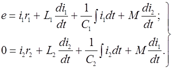 Рассмотрим систему двух колебательных контуров с трансформаторной связью, в которой к первому контуру подключен источник э.д.с. e (t ) (рис. 2,а), а r1 и r2 - выделенные для анализа сопротивления потерь в контурах.