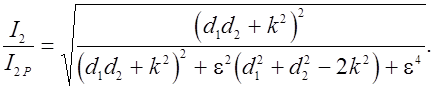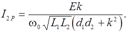 Обратимся в случае полного резонанса к выражению для тока во втором контуре (14) и исследуем его на экстремум, т. е. определим оптимальную связь, обеспечивающую I 2max max , как это было сделано при сложном резонансе. С учетом того, что Х 1 = Х 2 = 0, (14) принимает вид