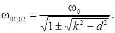 Рис. 6. Зависимость резонансной частоты системы двух колебательных контуров от коэффициента связи