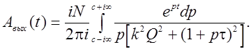 Определяя вычеты, получим следующее окончательное выражение для комплексной огибающей выходного сигнала (угол Q0 принят равным нулю)