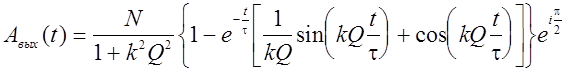 Так как к моменту t = T затухающую часть выражения (31) можно считать равной нулю, то комплексная огибающая результирующего сигнала на выходе для t > T должна иметь вид