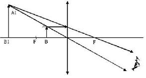 Предмет АВ размещают на расстоянии, немного меньшей фокусного, от лупы (рис. справа). При этом лупа дает прямое, увеличенное, мысленное изображение А1 В1. Лупу обычно размещают так, чтобы изображение предмета находилось на расстоянии наилучшего видения от глаза.
