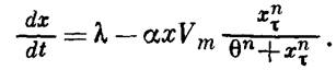 где x-регулируемая переменная, а λ и γ - параметры. Так как dx/dt>0 при x<λ/γ и dx/dt<0 при x>λ/γ, эту систему можно рассматривать как простую систему автоматического регулирования с установкой λ/γ.
