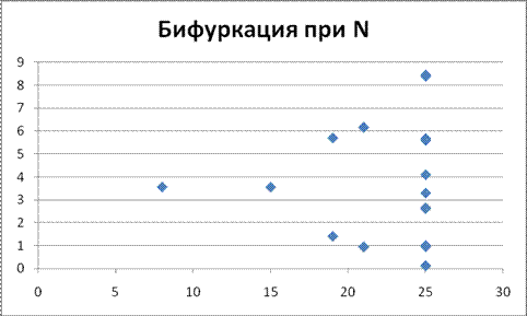 Рисунок 8. Бифуркация при изменяющемся параметре n .