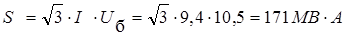 Sτ = 1,73· Iτ · Uб = 1,73 · 18,1 · 115 = 3605 МВ · А