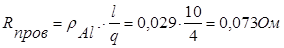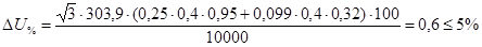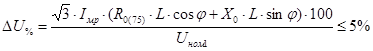 Проверяем условие пригодности выбранного кабеля по потерям напряжения (L– 0,4 км):